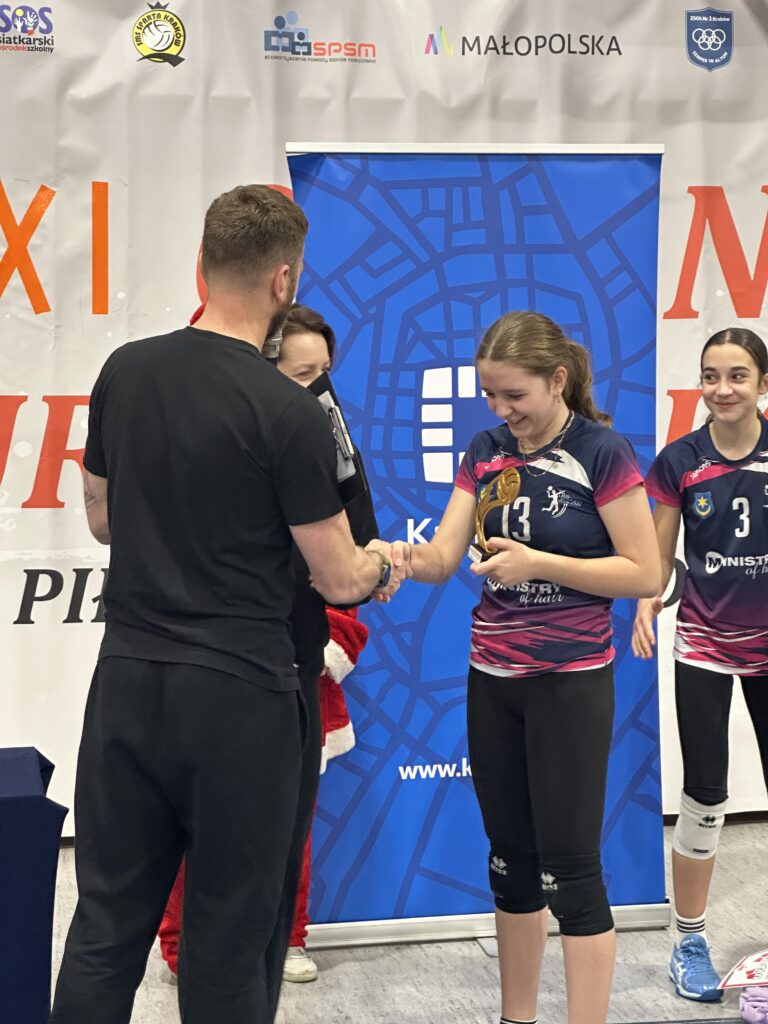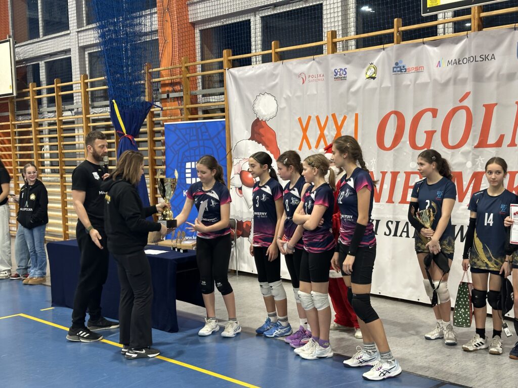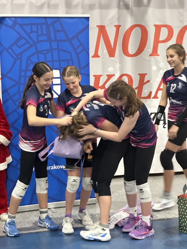 W sobotę nasza czwórka brała udział w XXXI Ogólnopolskim Turnieju Mikołajkowym mini piłki siatkowej w kategorii czwórek, który organizował klub SMS Sparta Kraków. W fazie grupowej nasza drużyna nie pozostawiła złudzeń rywalom pewnie zwyciężając kolejno z SMS Sparta Kraków 2, MKS Paradiso Łańcut i UKS Atom Żywiec. W drugiej rundzie równie pewnie pokonujemy SMS Szóstkę Mielec i SMS Spartę Kraków 1. W półfinale turnieju przyszło nam się zmierzyć z zespołem UKS 22 Kraków. Po znakomitym początku w naszym wykonaniu, w trakcie seta wdarło się trochę niepotrzebnej nerwowości i pozwoliliśmy się zbliżyć przeciwnikom, ale ostatecznie końcówka należała do nas i to my zameldowaliśmy się w finale. Tam zmierzyliśmy się z drużyną MKS MOS Wieliczka. Od początku to nasz zespół narzucał swoje warunki gry. W trakcie seta wieliczanki sukcesywnie starały się odrabiać straty i powoli zbliżały się do nas, ale wojna nerwów tym razem okazała się zwycięska dla nas. Brawa dla całego zespołu za świetny turniej oraz bardzo ambitną i nieustępliwą grę przez cały turniej. Dodatkowo wyróżnienie w naszym zespole otrzymała Iza Andreasik 👏👏
